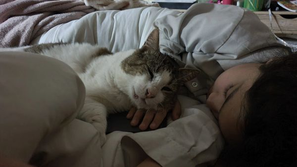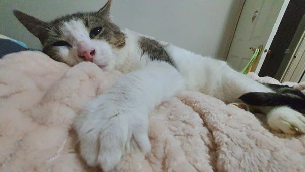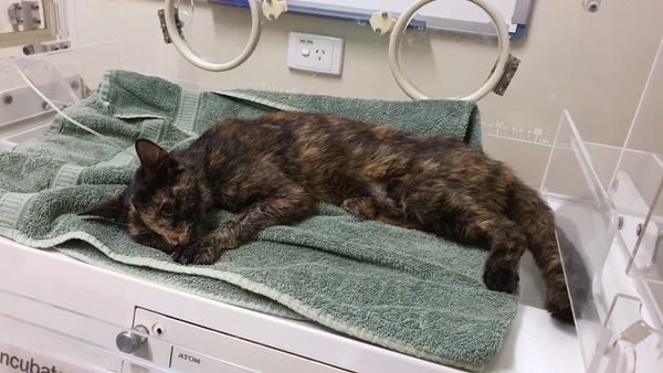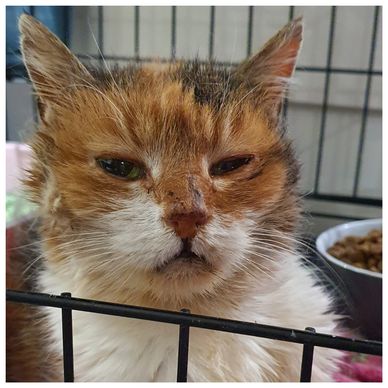 Pearl is a very elderly girl. When we rescued her, she was suffering from emaciation, dehydration due to explosive Diarrhea and vomiting. She couldn't eat or drink independently and couldn't even get herself to her Kitty Litter in time.