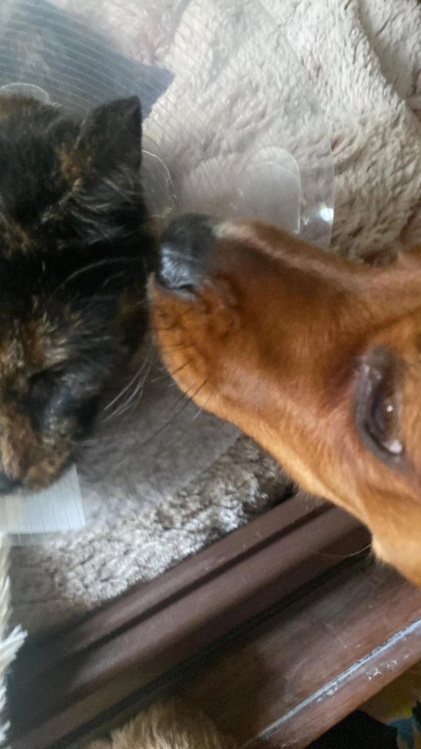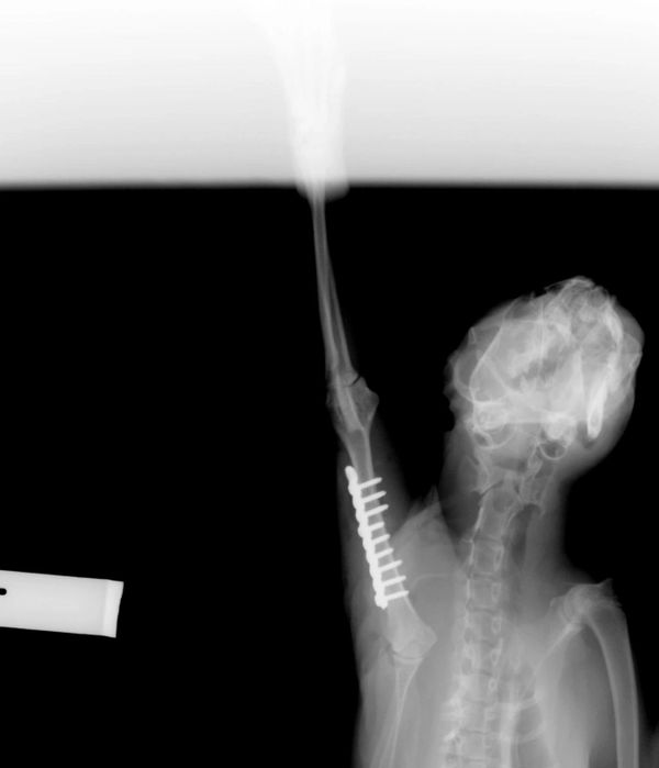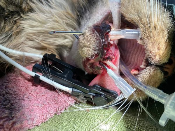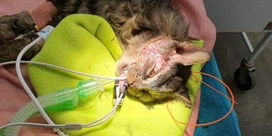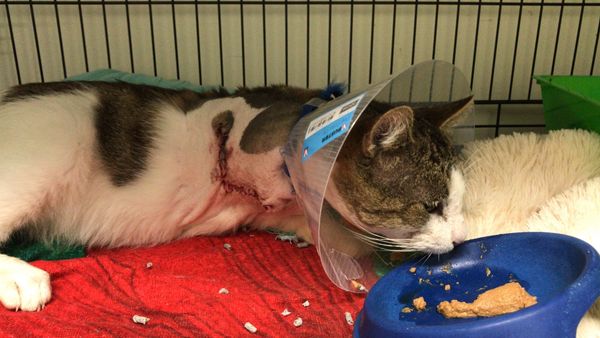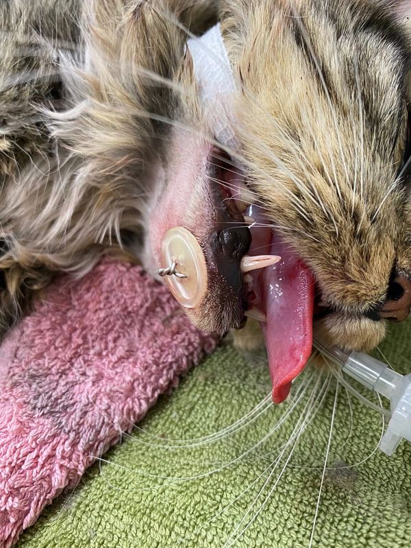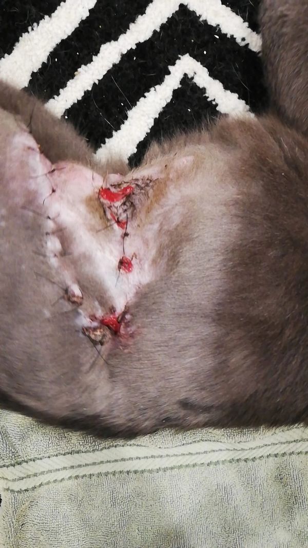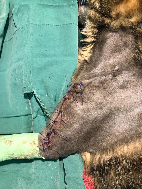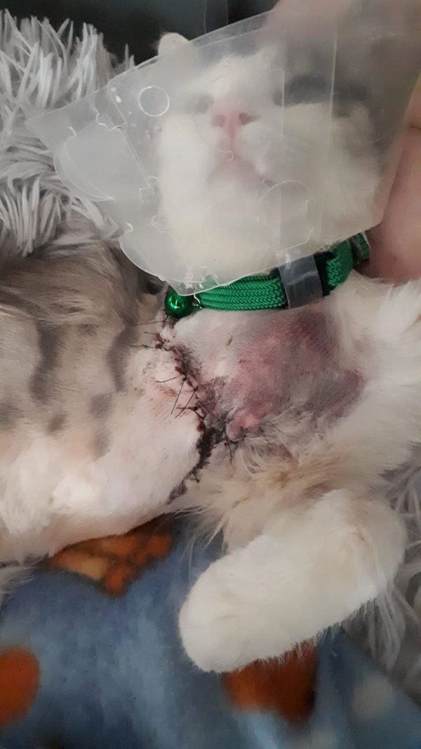Klaus got his head stuck in wiring and caused severe lacerations on each side of his neck. Klaus underwent 2 Surgeries to clean and Stitch up the damage he had done.