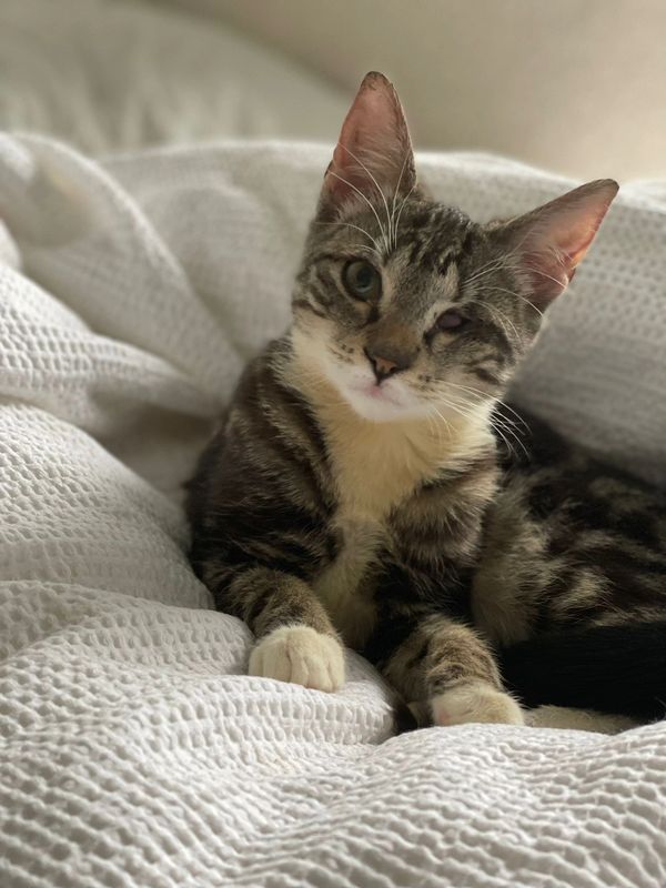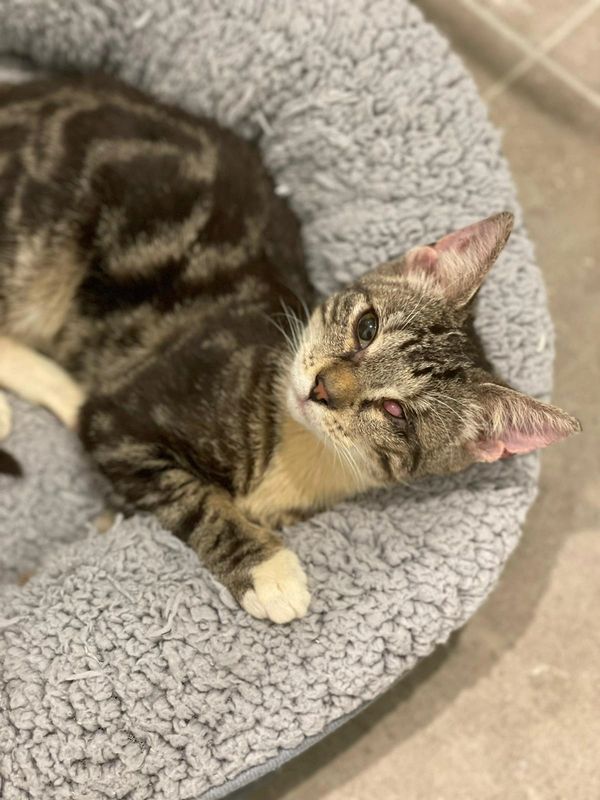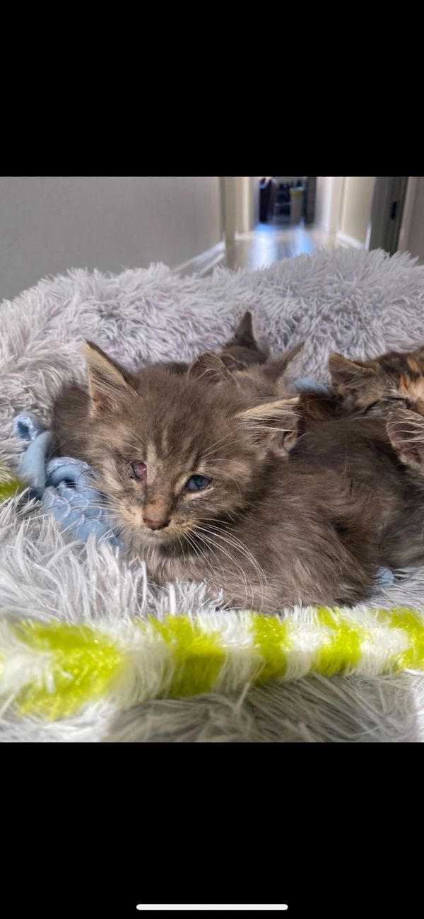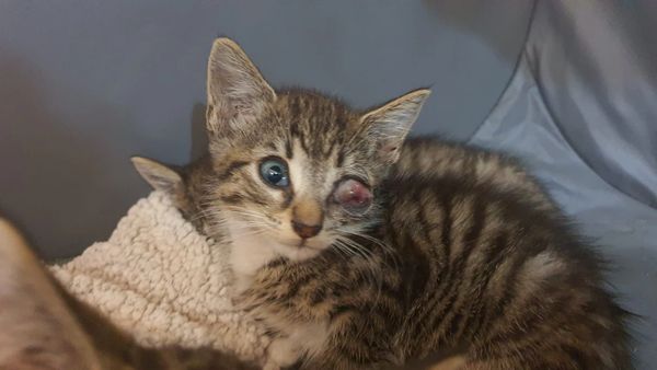 Sally had her Surgery 1 week ago and has recovered very well. Sally is the naughtiest little kitten now that she can see... she plays endlessly with toys and her siblings.
